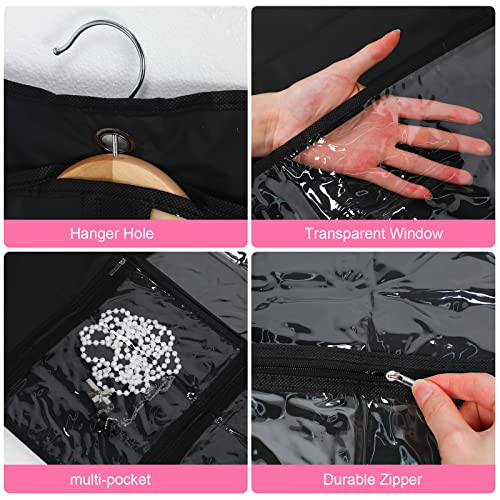 Woanger 6 Pcs Garment Bags for Dance Costumes Clear PVC with Zippers Garment Bag with Pockets Dance Costume Organizer Carrier for Storage Cover for Adult(Black,20” X 40”)