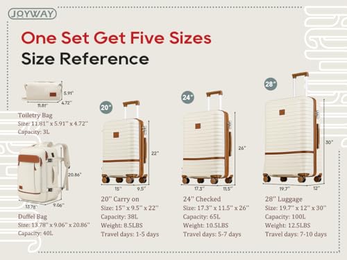 Joyway Expandable Luggage Sets 5 Piece, Lightweight Hard Shell Travel Suitcase Set with Spinner Wheels and TSA Lock
