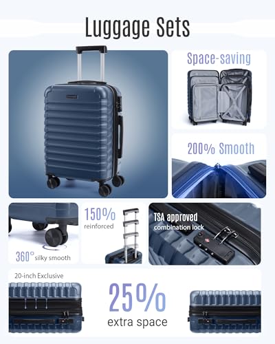 LIGHT FLIGHT Luggage Sets, 3 Piece Durable Suitcase Set with Spinner Wheels, 3 Pcs Hardside Lightweight luggage with TSA Lock, Large Checked Travel Suitcases, 20/24/28 Inch, Royal Blue
