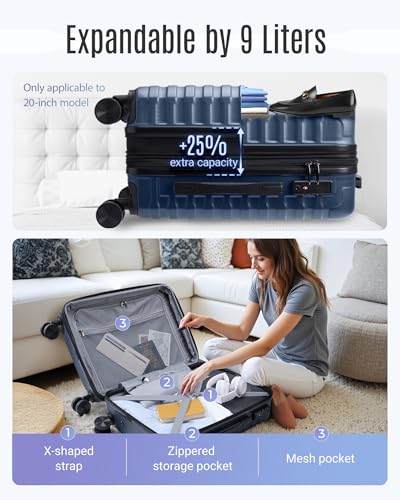 Durable Construction: Crafted from high-quality ABS material, hard shell luggage sets offer exceptional durability while remaining lightweight. The textured surface not only enhances aesthetic appeal but also provides scratch resistance, ensuring luggage looks pristine after every journey. The 20 inch carry on luggage is airline approved and features a 25% expandable capacity, and the 24-inch and 28-inch suitcases are standard versions and do not offer an expandable feature. Capacity : 20″ (42L, expandable), 24″ (58L, non-expandable), 28″(80L, non-expandable)