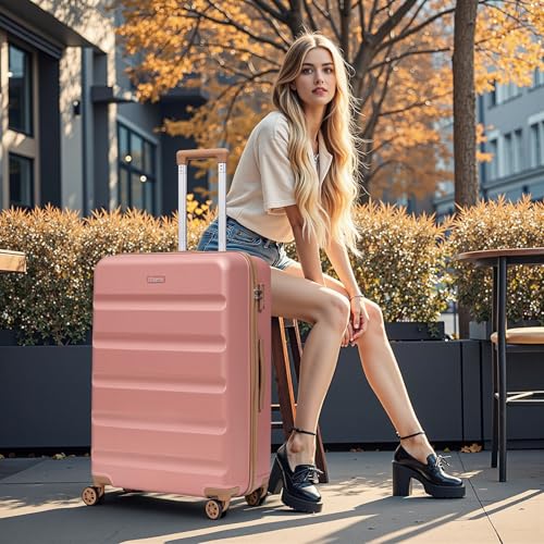 Luggage Sets 5 Piece, Suitcases with Wheels,ABS Hard Case Luggage with TSA Lock Spinner Wheels,Carry On Luggage Set (Pink,20/24/28 Inch)