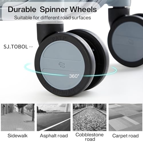 【High Quality Accessories】SJ . TOBOL durable spinner wheels,It is composed of precision shaft center and thickened TPE wheel skin, which is very wear-resistant,quieter and has strong bearing capacity, It is applicable to different roads such as cobblestone road and carpet road. Smooth and durable 5-strand reinforced explosion-proof zipper reverse coil prevents burst zipper. Travel-approved combination lock is safe and convenient. Ergonomics telescopic handle with multi-steps adjustment.