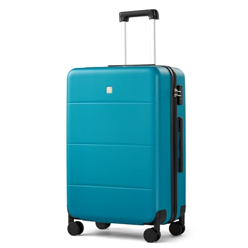 Hanke 24 Inch Checked Luggage with Spinner Wheels Hard Shell Suitcases Lightweight Travel TSA Luggage for Women Men Medium Suitcase(Caribbean Blue)