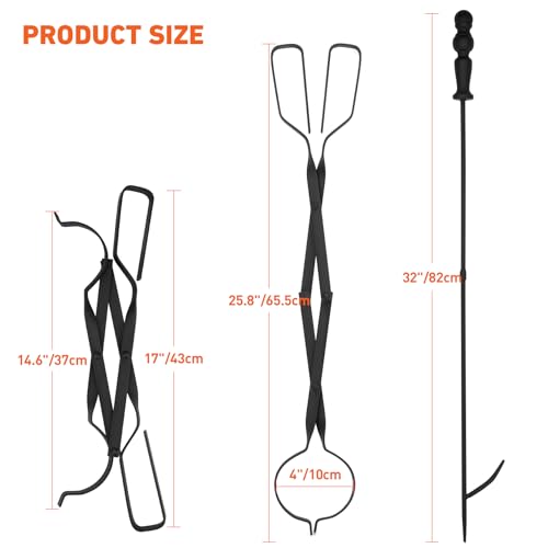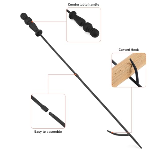 Poker Stick: Length-32in/81cm, weight-1lb/0.45kg, Heavy duty steel for easy moving of logs or fire grates, protect your hands from accidentally touching the hot fire pit, fireplace, or stove, easy to assemble