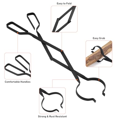 Fireplace Tongs: Length-25in/63.5cm, weight-1.76lb/0.8kg, the smooth open and close action and strong grabbing force makes it easy to get a strong grip on pieces of wood, even if it’s heavy or an unusual shape. The design of the tip also grips small logs perfectly, keep you away from the heat, so you can get the wood exactly where you need it and keep the fire stoked. Folding design makes it easy to storage when not in use