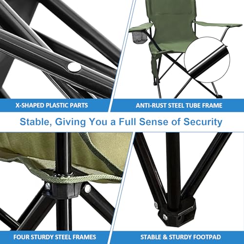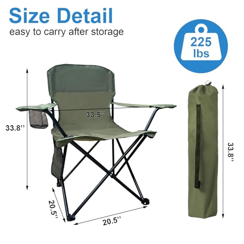 Foldable Camping Chair with Cup Holder, Storage Pocket, 225lbs Capacity, Wide Base Feet for Sand/Mud, Sweatproof Portable Outdoor Chair for Hiking, Beach, Sports, Green