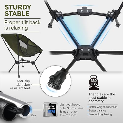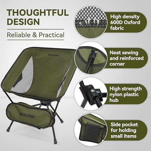MARCHWAY Lightweight Folding Camping Chair, Portable Foldable Compact for Outdoor Camp, Travel, Beach, Picnic, Festival, Hiking, Backpacking, Supports 330Lbs (Green)