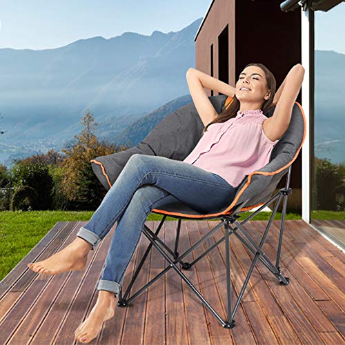 OUTDOOR LIVING SUNTIME Sofa Chair, Oversize Padded Moon Leisure Portable Stable Comfortable Folding Chair for Camping, Hiking, Carry Bag