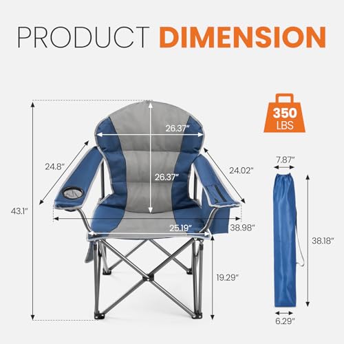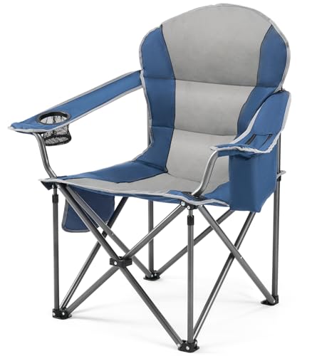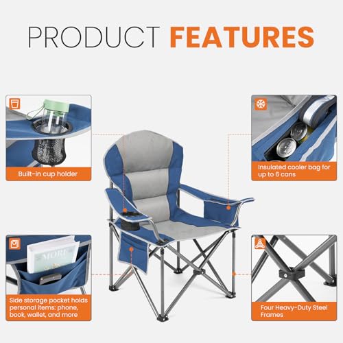 Sweetcrispy Camping Folding Chair, Heavy Duty Support – Foldable Padded Seat with Side Pockets, Cup Holder & Insulated Cooler Bag for Camping, Beach, Fishing, Outdoor Events, Bluegrey