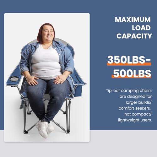 Excellent Weight-bearing Design: This camping chair features 4 rust-resistant heavy-duty steel tubes and an X-shaped support frame that can hold up to 350 – 500 pounds. The 4 non-slip feet on the bottom ensure stability and safety when relaxing outdoors for long periods of time.