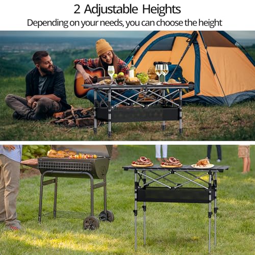 Folding Camping Table, Aluminum Roll Up Camping Table Adjustable Height with Storage Net and Bag, Lightweight Outdoor Table 32.2” X 16”, for Outdoor Travel BBQ Party Picnic, Black