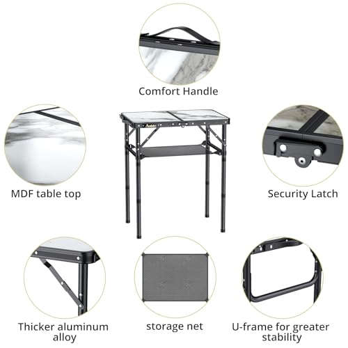Folding Camping Table with Storage Net, 3 Adjustable Height Max 27.5″ Aluminum Small Folding Table, Portable Table with Carry Handle, Lightweight, for Outdoor Indoor Travel Camping Picnic