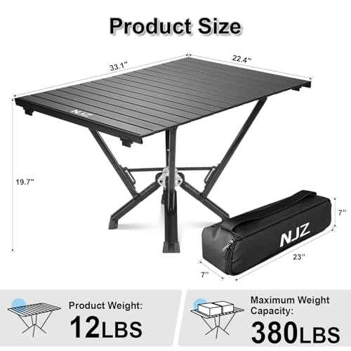 Great Weight Capacity: With a capacity of up to 380 lbs and a spacious tabletop of 33.1″ x 22.4″, the NJZ portable table offers strength and ample space for food, drinks, and games. It’s a fantastic option for backyard barbecues and outdoor gatherings