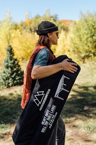 Lightweight and Sturdy Design: The Mountain Summit Gear Roll-Top Table has a table top made from aluminum with a frame made of weather-resistant steel which makes this the perfect lightweight camping table with a weight capacity of 70 lbs.