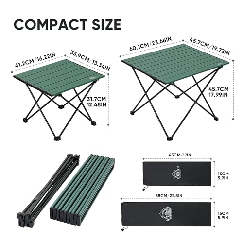 Portable Folding Camping Table, Small Compact Aluminum Beach Picnic Table, Lightweight Collapsible Outdoor Camp Tables That Folds & Rolls Up, Beach Gear Essentials Camp Accessories, Sylvan Green