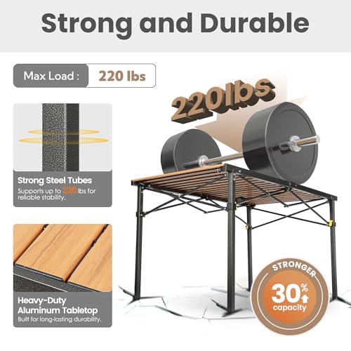 Strong & Durable: The Join Nature folding camp table features a frame made of high-strength painted steel tubes combined with cross-shaped support tubes, and the tabletop is constructed from heavy-duty aluminum sheets. The high-quality materials and construction make our camping table exceptionally strong and durable, with a load-bearing capacity of up to 220 pounds—at least 30% higher than standard tables.