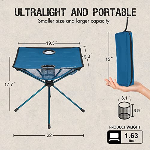 PORTAL Folding Camping Table, Ultralight Compact Aluminum Mesh Table with Carrying Bag, Small Beach Table Foldable Portable for Sand, Outdoor, Picnic, Camp, Boat, Travel, Blue