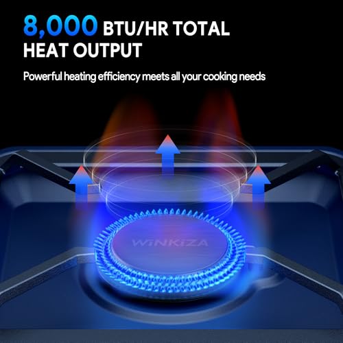 High Power Burners: Accommodates pan (Up to 8 inches), WINKIZA propane camping stove features high-powered sealed burner with 8,000 BUTs of cooking power