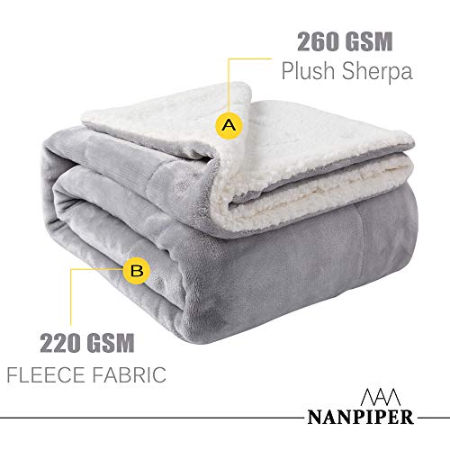 NANPIPER Sherpa Twin Thick Warm Reversible Velvet Plush Blanket for Winter – Super Soft Fuzzy Flannel Fleece Wool Like (Light Grey Twin Size 60″x80″)