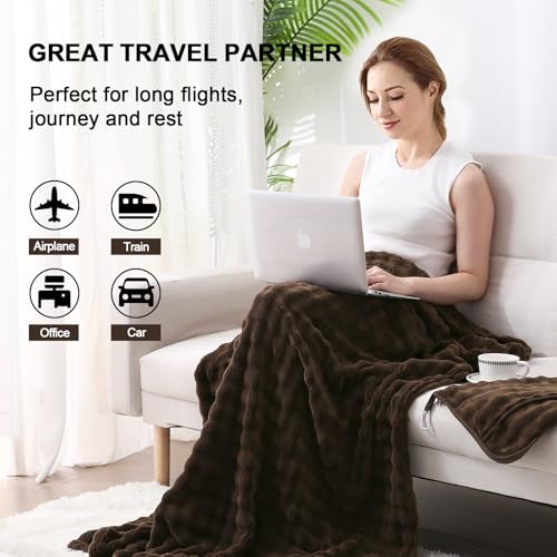 SOCHOW Travel Blanket for Airplane Train and Car, Soft Travel Blanket or Pillow 2 in 1 Compact with Portable Bag Pillowcase, Flight Blanket with Luggage Sleeve and Backpack Clip, Brown