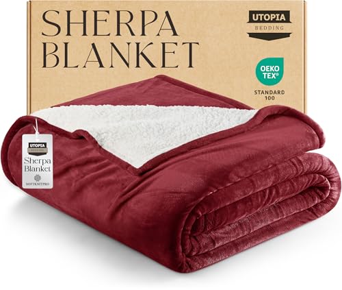 Utopia Bedding Sherpa Blanket Queen Size (Red, 90×90 Inches) – Soft Lightweight Plush Fleece Reversible Blanket for Bed, Sofa, Couch, Camping and Travel