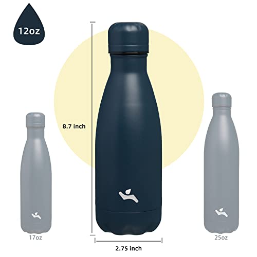 Insulated Water Bottles,12 oz Double Wall Stainless Steel Vacumm Metal Flask for Sports Travel, Navy Blue