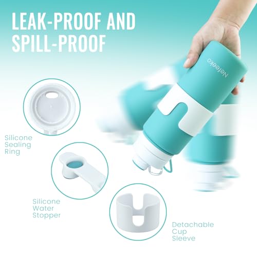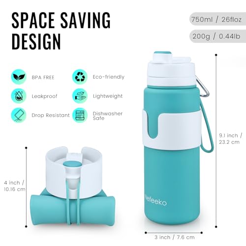 Nefeeko Collapsible Water Bottle, BPA Free 26oz Foldable Water Bottle for Travel Sports, Leak-Proof Spill-Proof Portable Water Bottles with Carabiner, Lightweight
