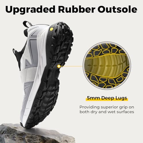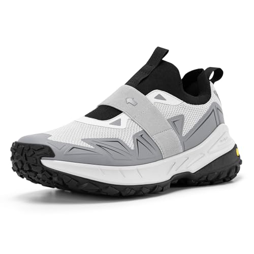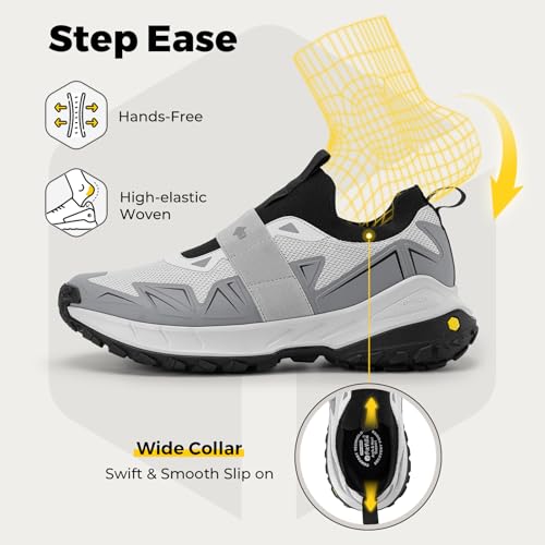 FitVille Men’s Extra Wide Slip On Shoes Comfortable Orthopedic Hiking Sneakers with Arch Support Slip Resistant Trekking Walking Shoes for Travel Camping