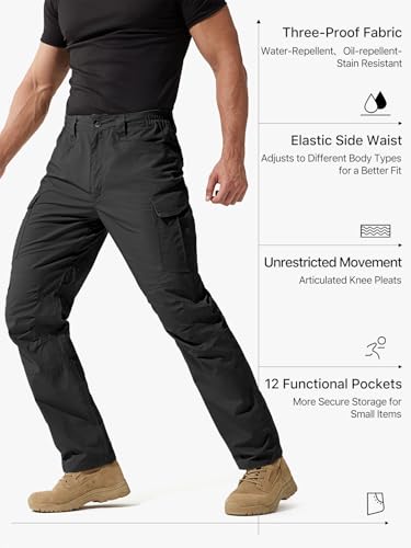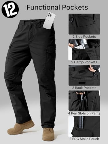FREE SOLDIER Men’s Water Resistant Pants Relaxed Fit Tactical Cargo Work Pants with Multi Pocket