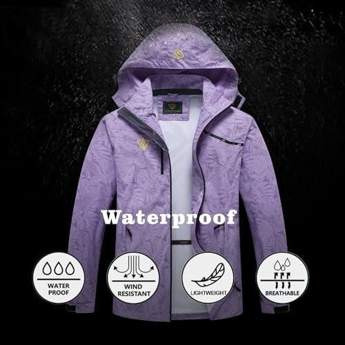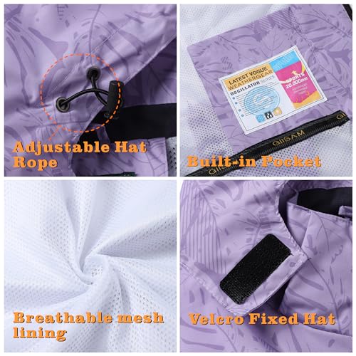 GIISAM Women’s Waterproof Rain Jacket,Lightweight Windproof Full Zip Women’s Packable Fall Raincoat Windbreaker with Hood