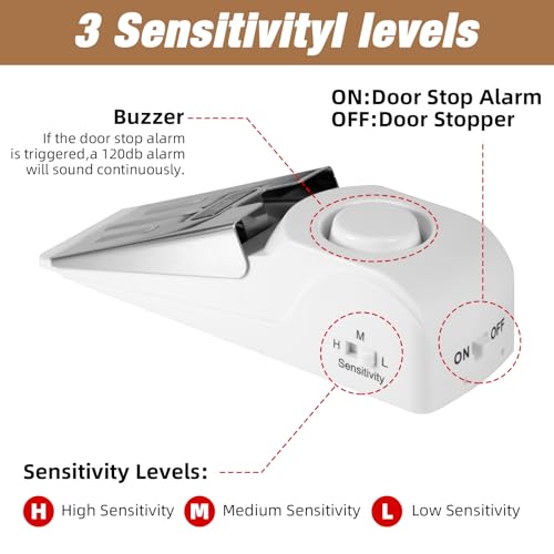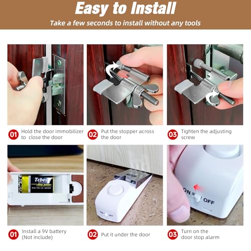 【Suitable for doors that open inward】The door stoppers security is powered by a 9V battery (battery not included). The gap between the door and the floor should be 10 mm (0.39 inches) to 35 mm (1.38 inches). About the portable door lock for travel The gap between the door and the door frame must be greater than 0.08 inches. Note: door stopper alarm and hotel door locks for travelers security are only suitable for doors that open inwards.
