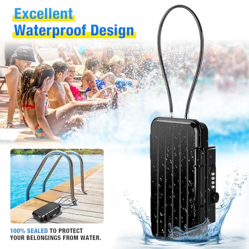 Portable Safe Box, Waterproof Anti-Theft Beach Travel Safe Box Combination Security Lockbox with Removable Wire Rope Portable Lock Box for Dorm, Hotel, Home, Office, Car