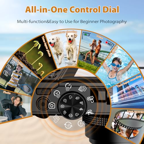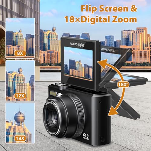 【4K 64MP Autofocus Digital Camera】Capture stunning 64MP photos and 4K videos with this digital camera featuring a 3-inch flip screen, 18X digital zoom, and built-in fill light. Designed for photography enthusiasts of all ages, this vlogging camera offers autofocus, manual focus, and fixed focus modes. Ideal for vlogging, it supports time-lapse, slow motion, loop recording, and continuous shooting—making it perfect for beginners. Ideal gift for kids, adults, seniors, and students.