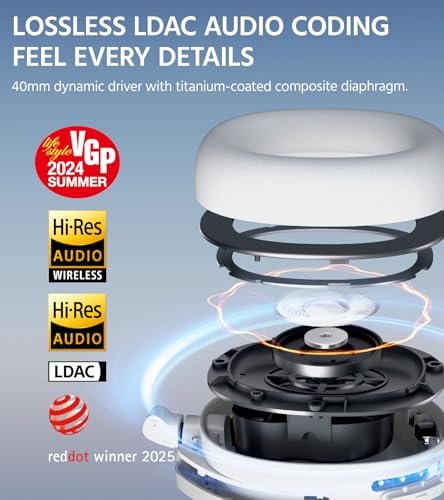 [Hi-Res Audio with LDAC]:The W830NB features 40mm large dynamic drivers and an independent acoustic chamber layout, supports LDAC high-definition decoding for Hi-Res Wireless audio, transmitting at a transfer rate of 990kbps,offering 3X music detail of standard Bluetooth codes and delivering rich sound quality that lets you feel every note.