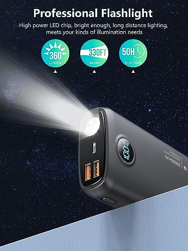 Portable Charger 30,000mAh-Output Input USB C Fast Charging LED Display SCP22.5W PD3.0 QC4.0 Power Bank, Flashlight External Battery Pack for iPhone, Samsung Galaxy, LG, and More Black