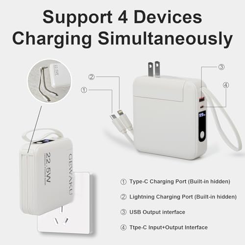 Be the first to review “Portable Charger Power Bank for iPhone 16, 22.5W Fast Charging Built-in Cable and AC Wall Plug, 3-in-1 Compact 15000mAh USB-C Battery Pack Travel Essentials for iPad, Android, Samsung (White)”