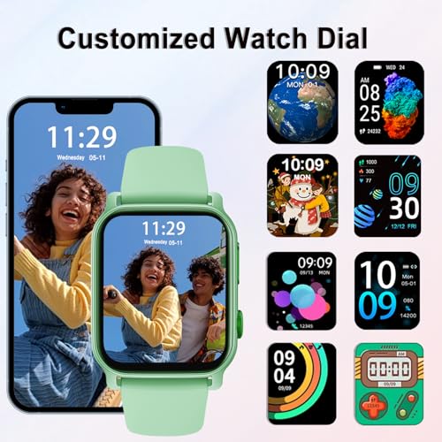 QTLLBT 8-Language Translation smartwatch Bluetooth Call (Answer/Make Call) Flashlight 300MAH Fitness Tracker IP68 Waterproof 100 Sports Heart Rate Monitor for Android iPhone Women smartwatch (Green)