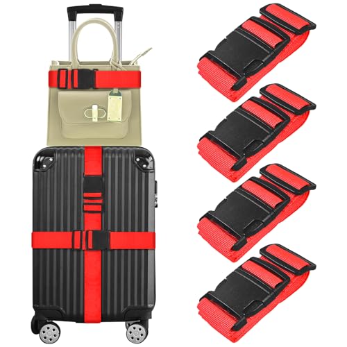 vivinin 4 Pack Luggage Straps, Luggage Belt with Buckle Closure, Adjustable Luggage Belt for Travel Bag Closure, Luggage Security (Red)