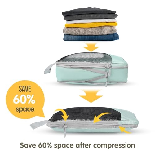 LIGHTWEIGHT AND DURABLE: Our compression packing cubes for travel is made of durable polyester fabric that stands up to long hours of traveling. This compression packing cube does not add extra weight and is perfect for situations where you want to save as much weight as possible and save space in your suitcase.