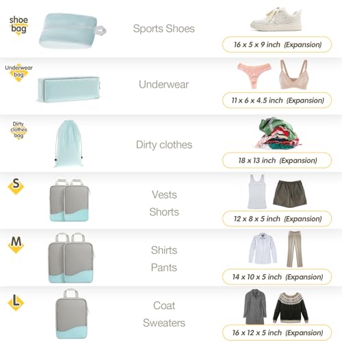 FUNCTIONAL BAG–Are you worried about not having a dedicated space for underwear, shoes, and dirty clothes? Now you don’t have to worry anymore. Our compression packing cubes travel will solve your troubles at once. Special storage bags are designed to allow you to easily sort and place them. You will no longer have the trouble of mixing them together.