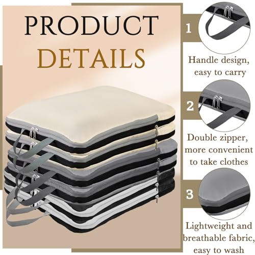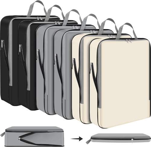 Hosuly 6 Pcs 17.3 x 12.6” Compression Packing Cube Bag Extra Large Travel Expandable Space Saving Organizers XL for Luggage Storage(Black, Gray, Beige)