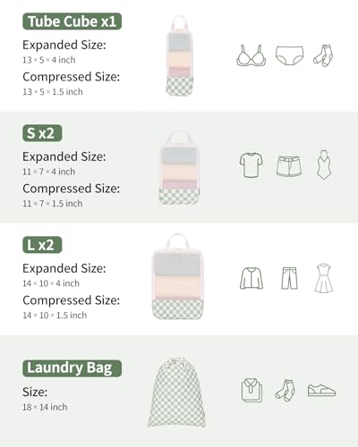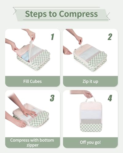 Narwey 6 Set Compression Packing Cubes Travel for Carry on Women, Packing Organizers Bag for Backpack Luggage Suitcase Duffle Bags