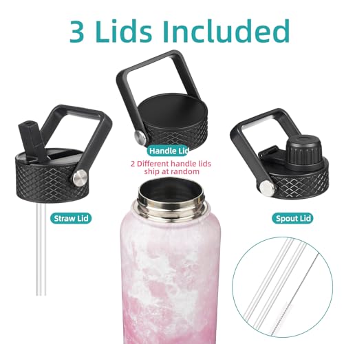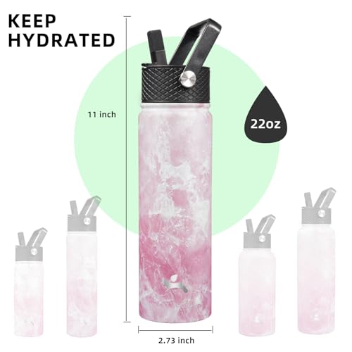 22oz Stainless Steel Bottles with 3 Lids Sport Insulated Water Bottle,Marble Blossom