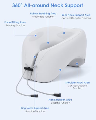 【2 in 1 Travel Pillow】As U-Shape Pillow, our travel pillow offers 360° all-around neck support and helps you keep your neck and head upright to alleviate pressure and without getting any soreness during travel. As Napping Pillow, the airplane neck pillow is designed with a perfect 45° angle, allowing your head and neck to naturally lean forward. This sleeping pillow decreases the pressure of your cervical vertebra.