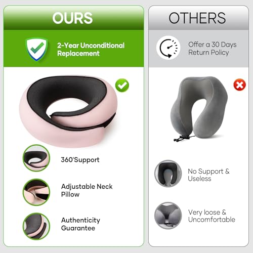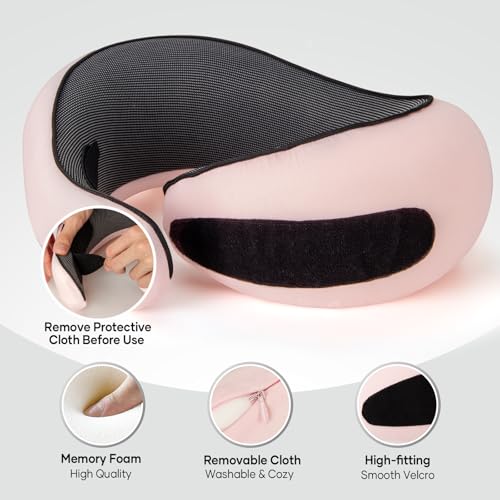 NOCRLG Travel Pillow, Travel Neck Pillow for Airplanes Car, 100% Pure Memory Foam Travel Pillow, Sleeping Essentials for Long Flight 360° Head Support Degree Comfort and Breathability (Pink)