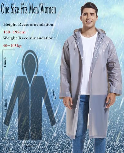 Best Quality – Our raincoats are made of EVA material, thickness of 0.15mm. Our rain coats not only dries quickly, but also can be recycled for a long time. Raincoats are durable, tear resistant, and lightweight.
