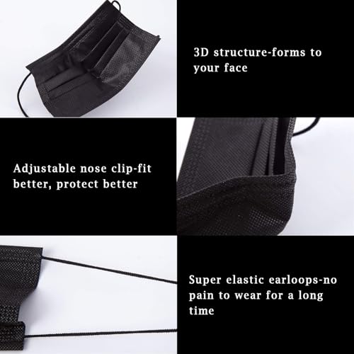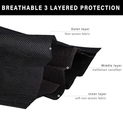 Borje Disposable Face Mask, 100 PCS Black Masks, 3 Ply Protection Face Masks