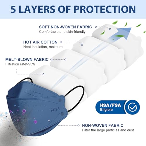 FENFEN KN95 Face Masks Disposable Adults – 50 Pack 5 Layer Protection Dust Breathable Comfortable Respirator Women KN95 Mask Individually Wrapped