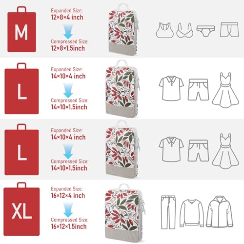 Compression Packing Cubes for Travel 4 Set Luggage Packing Organizer Bag Compressible Expandable Organizer Cubes For Carry On Luggage Suitcase Travel Essentials Accessories for Women Men