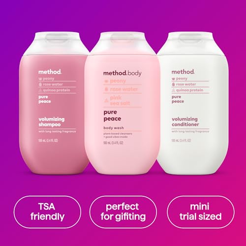 Method Body Wash and Hair Care Gift Set, Pure Peace, 3.4 oz Travel Size Bottles